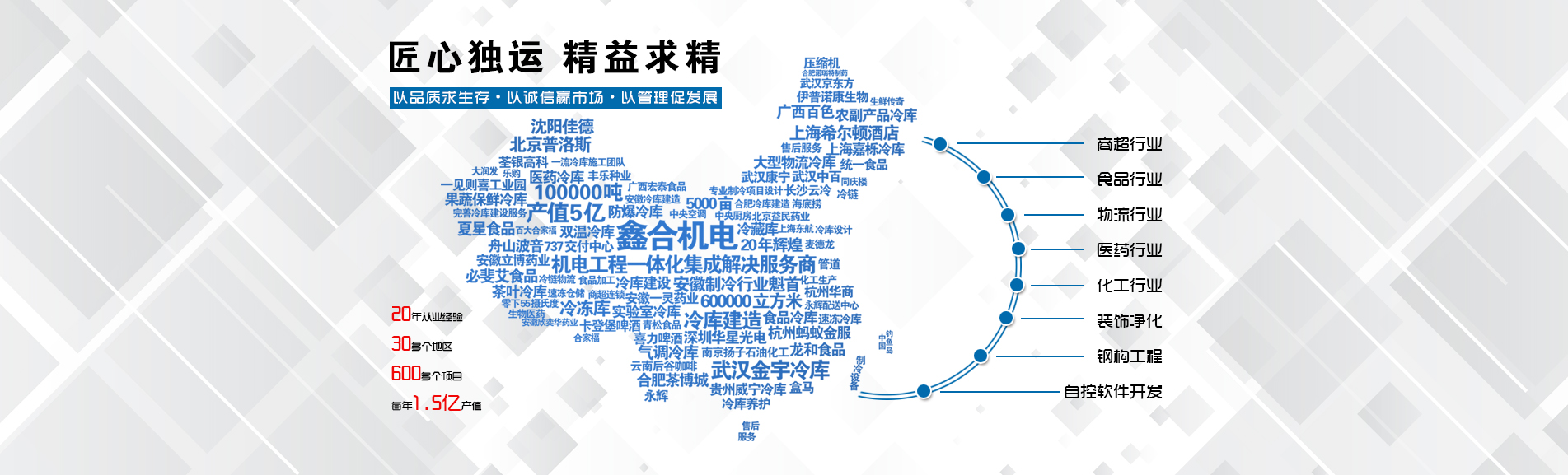 安徽鑫合機電設備有限公司于2002年組建運營,專業(yè)從事冷凍、冷藏庫、中央空調(diào)、醫(yī)藥凈化工程的規(guī)劃設計、施工承建、售后服務為一體的綜合性工程公司,與100多家實力雄厚的大中型企業(yè)建立長期產(chǎn)略合作關系,其中有多家世界500強和上市企業(yè)。公司作為中國倉儲與配送協(xié)會會員單位、安徽省制冷學會理事單位、上海楊浦區(qū)制冷協(xié)會工程總承包負責單位,引領于行業(yè)前沿。我們將銘記給予我們大力支持的各界新老朋友及合作伙伴,我們將會保持“互惠互利、共同發(fā)展”的原則與您共創(chuàng)雙嬴的合作關系。